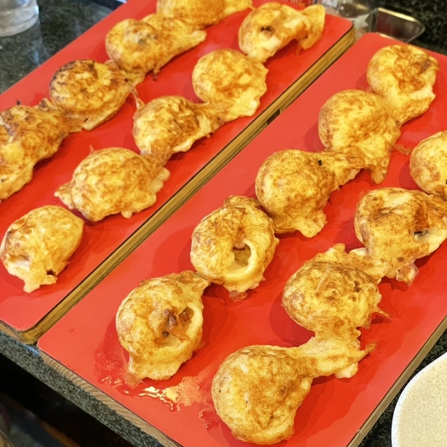 有馬味噌ダレの餃子も、だし以外でも食べられる明石焼きも、酒のつまみにぴったりでした。