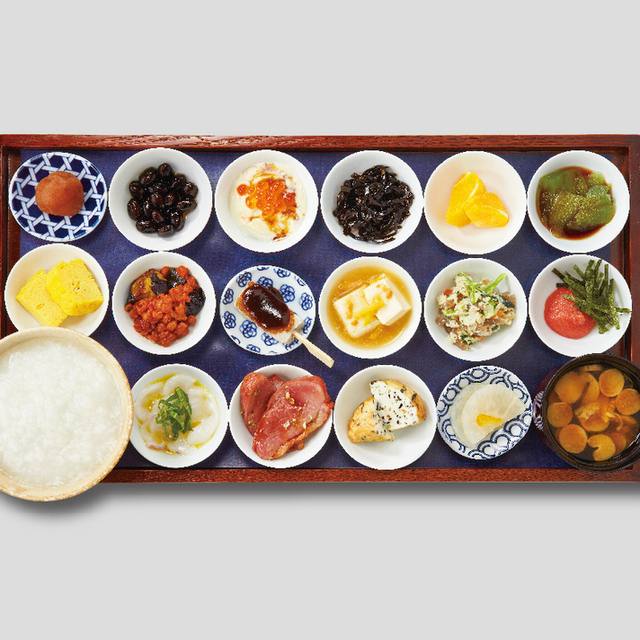 築地本願寺の経堂を眺めながら食事が楽しめ、8:00〜10:30提供の「18品目の朝ごはん」が人気です。